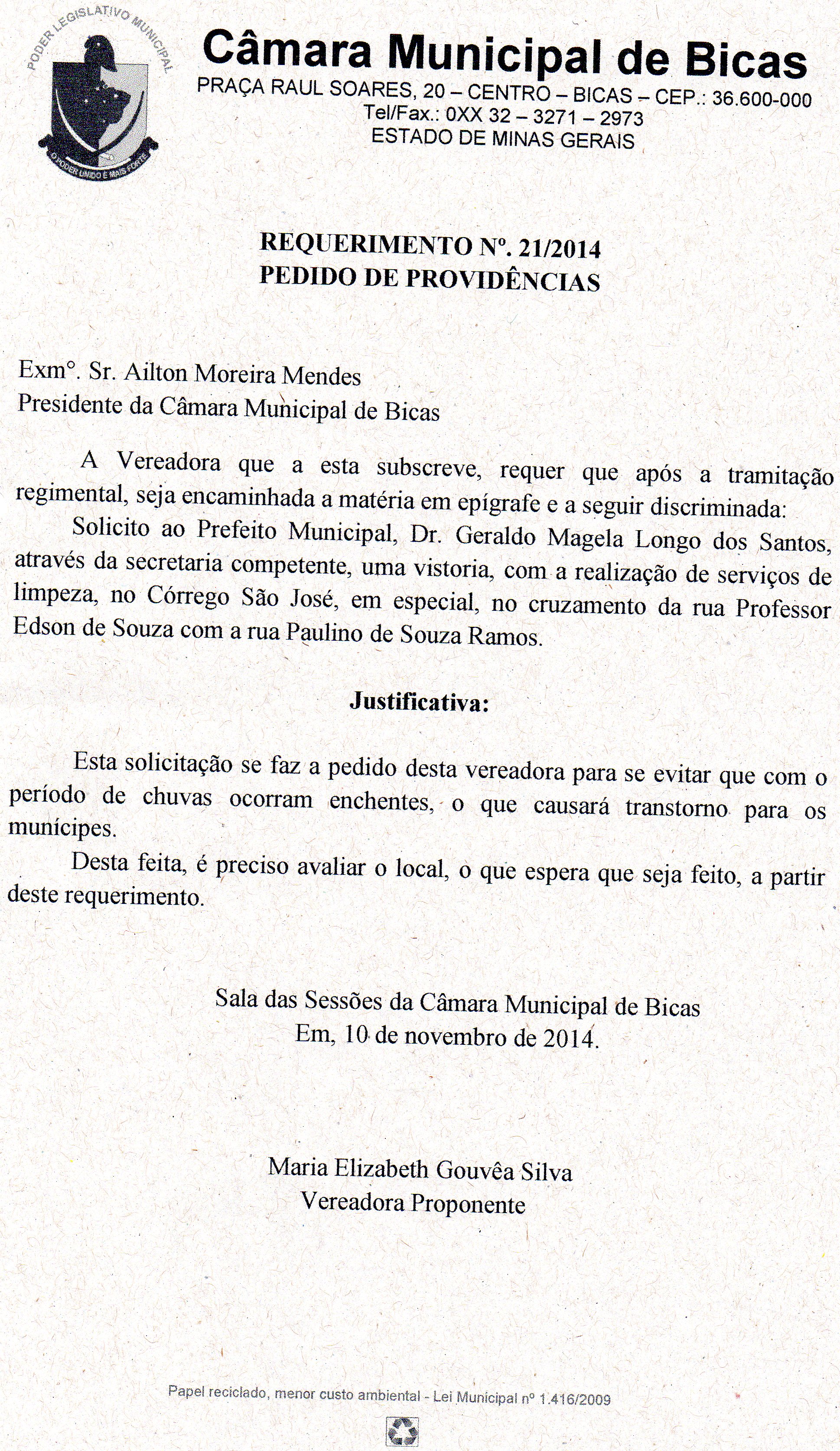 ![]() PEDIDO DE PROVIDÊNCIAS-LIMPEZA NO CÓRREGO SÃO JOSÉ.