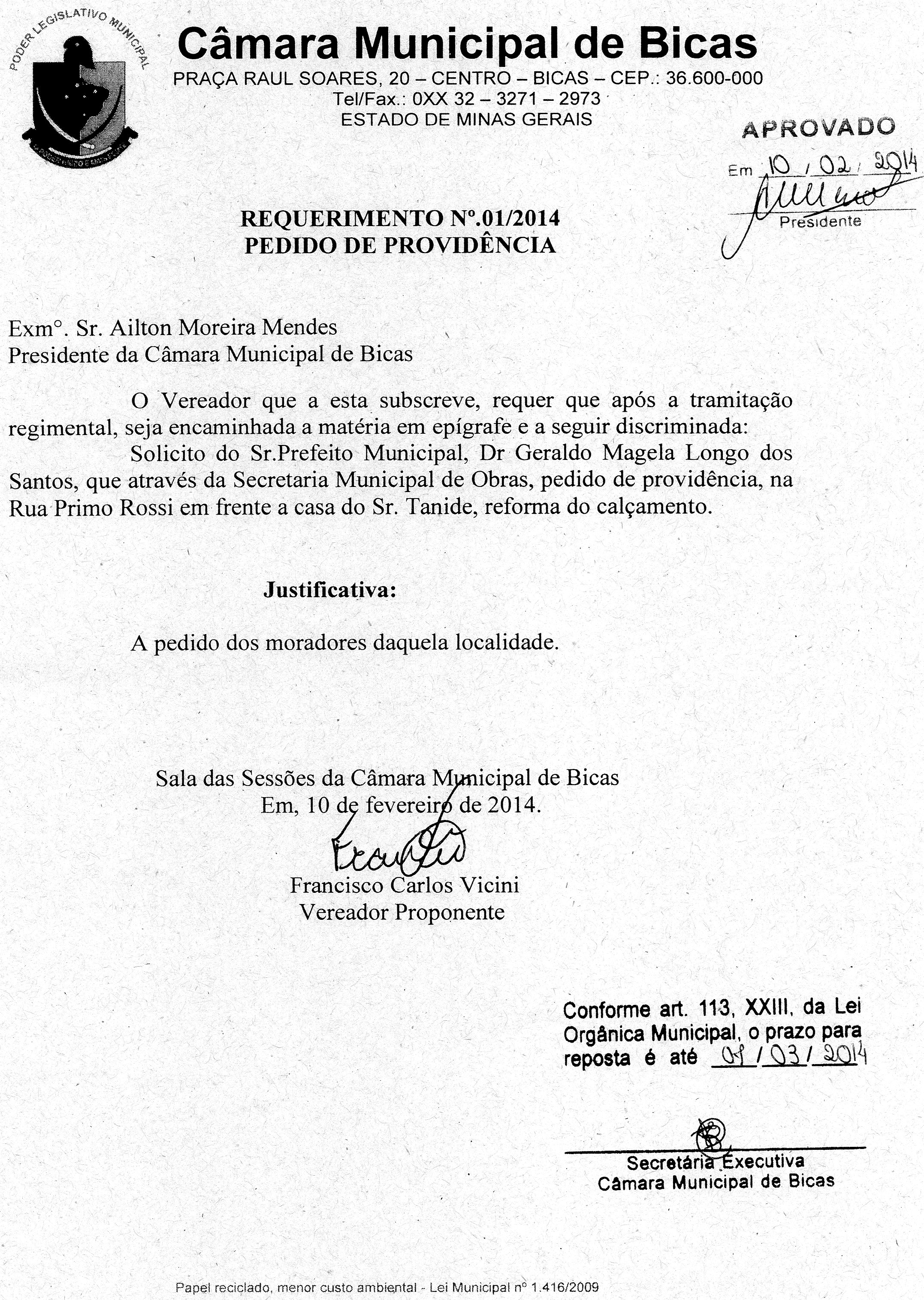 ![]() PEDIDO DE PROVIDÊNCIA-REFORMA DO CALÇAMENTO.