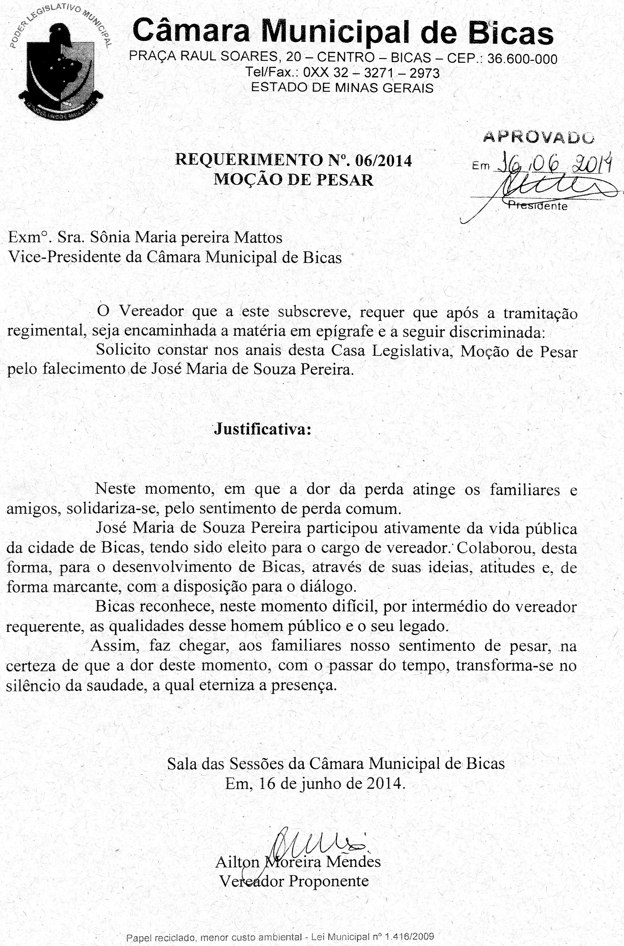 ![]() MOÇÃO DE PESAR- JOSÉ MARIA DE SOUZA PEREIRA