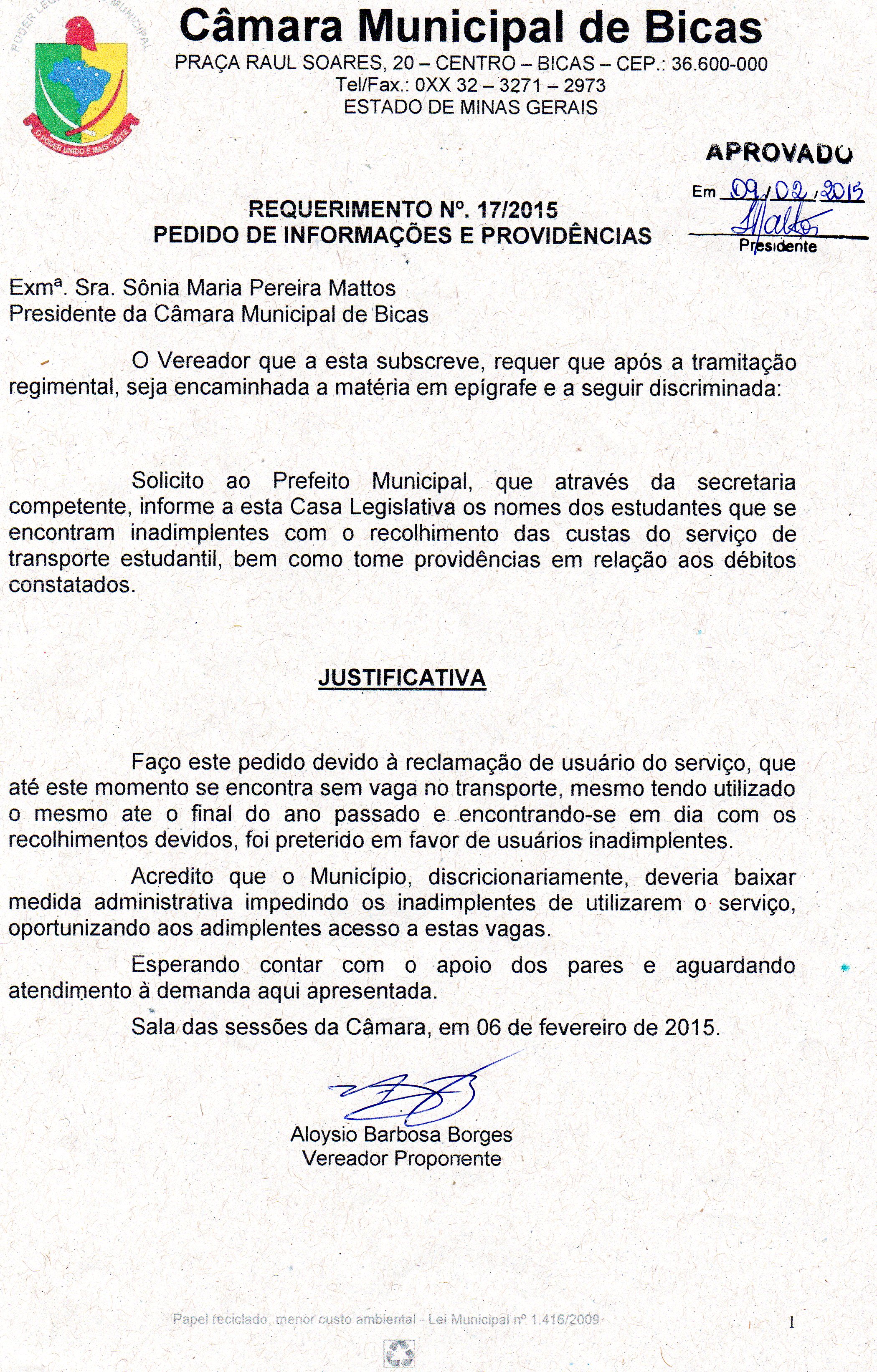 REQ 17/2015 - Requerimento