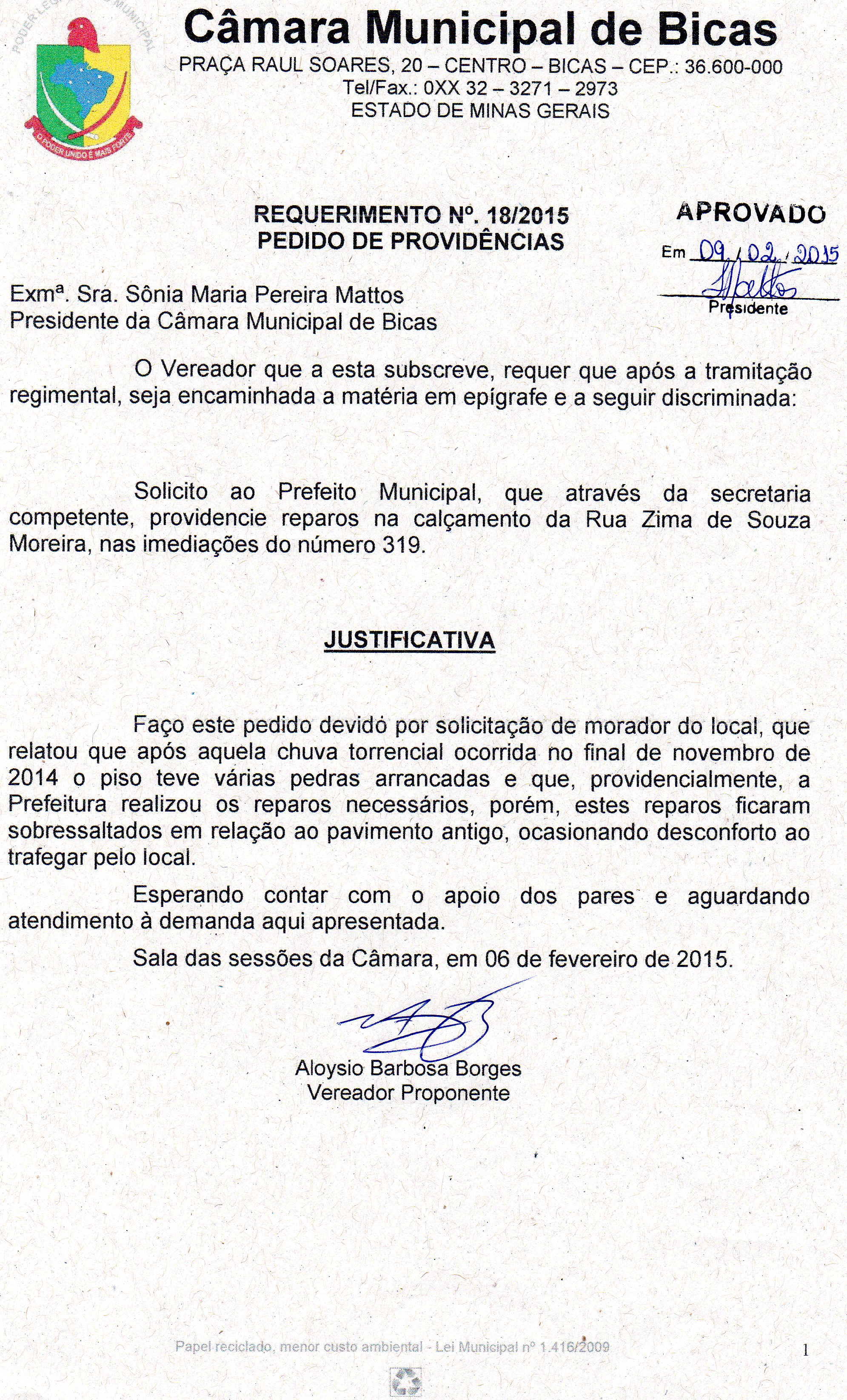 REQ 18/2015 - Requerimento