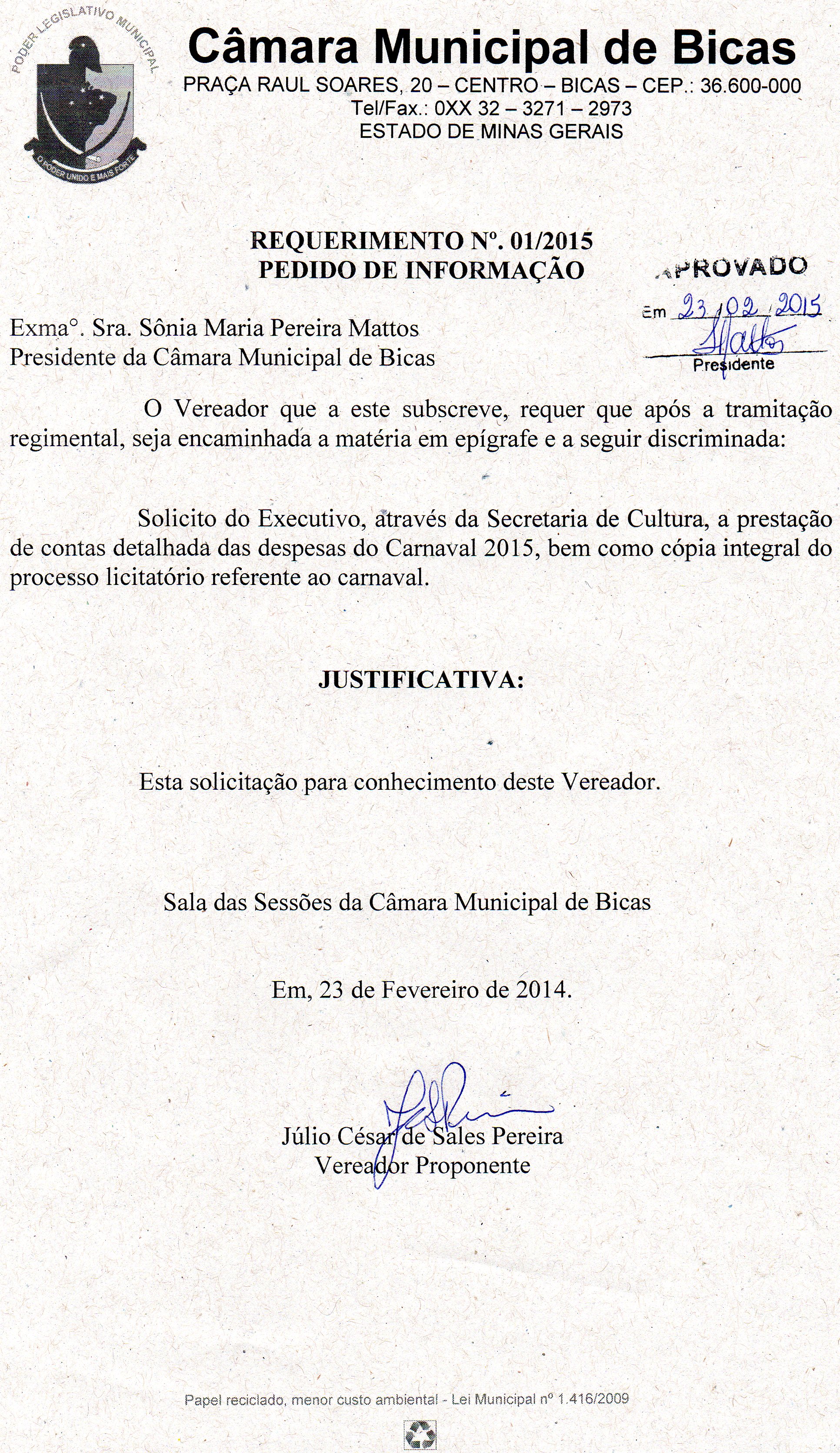 REQ 23/2015 - Requerimento
