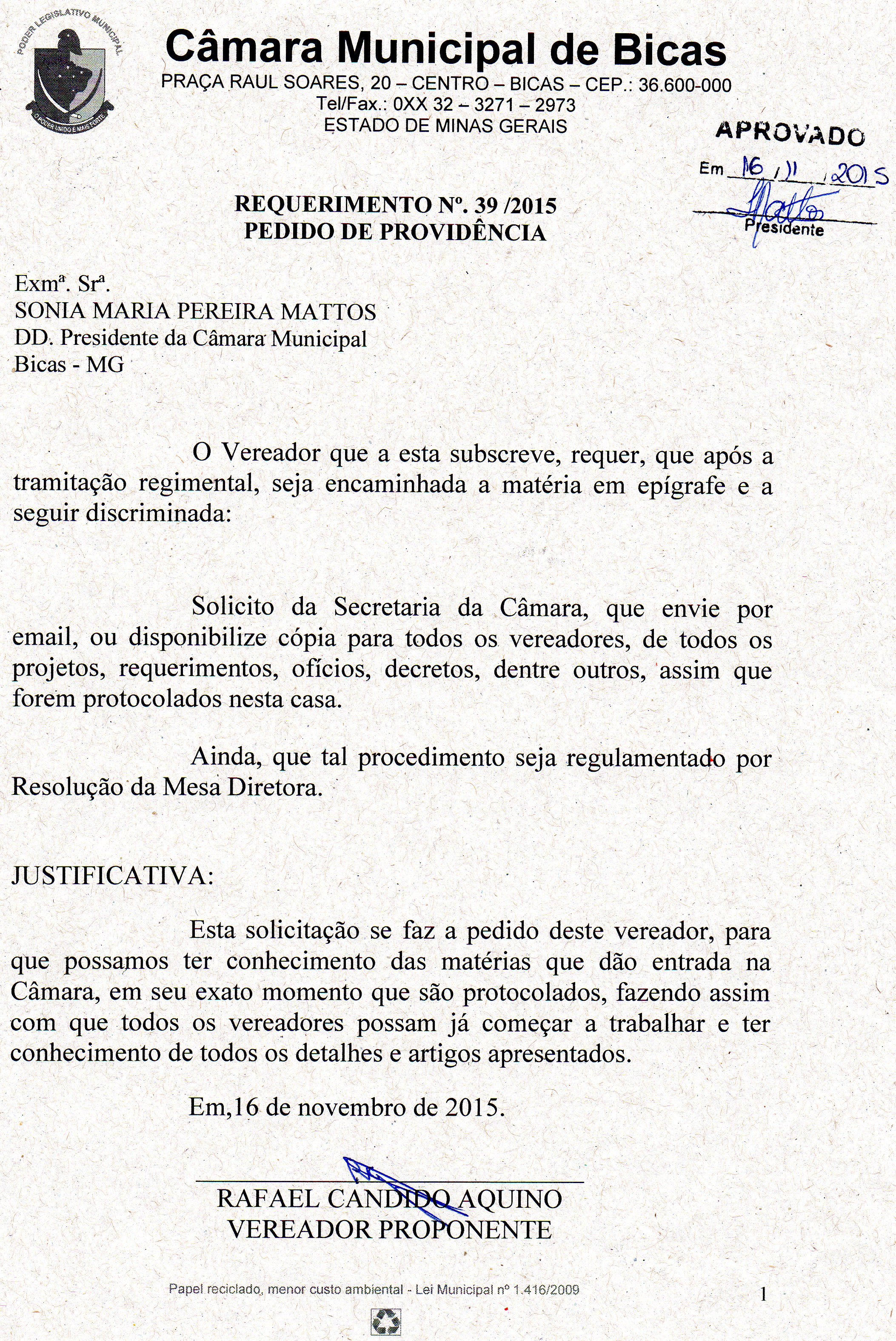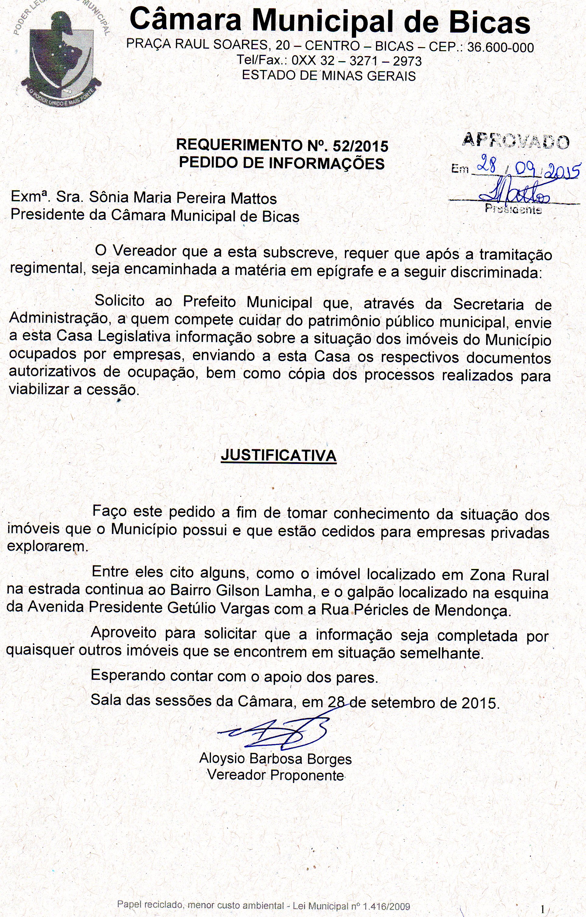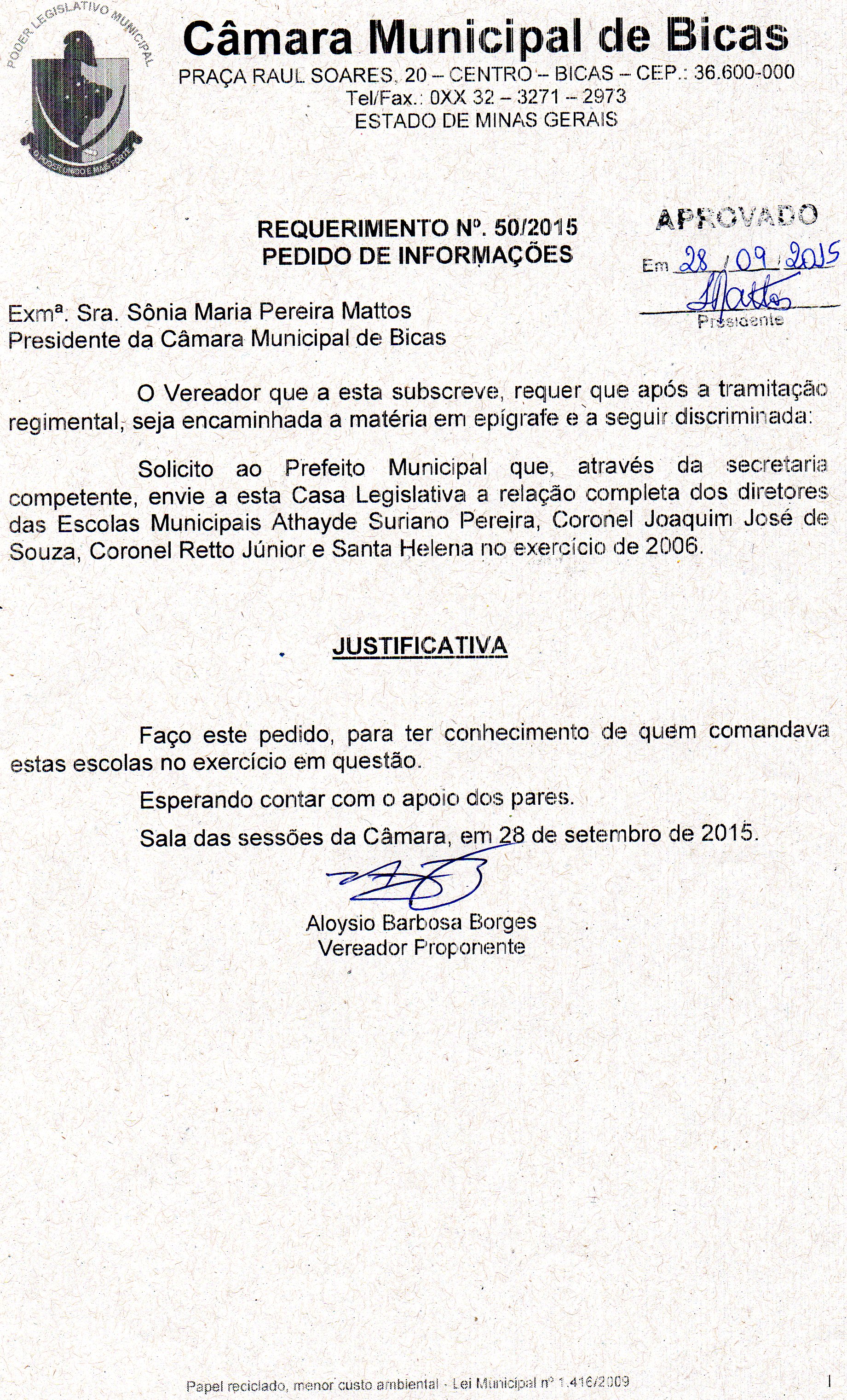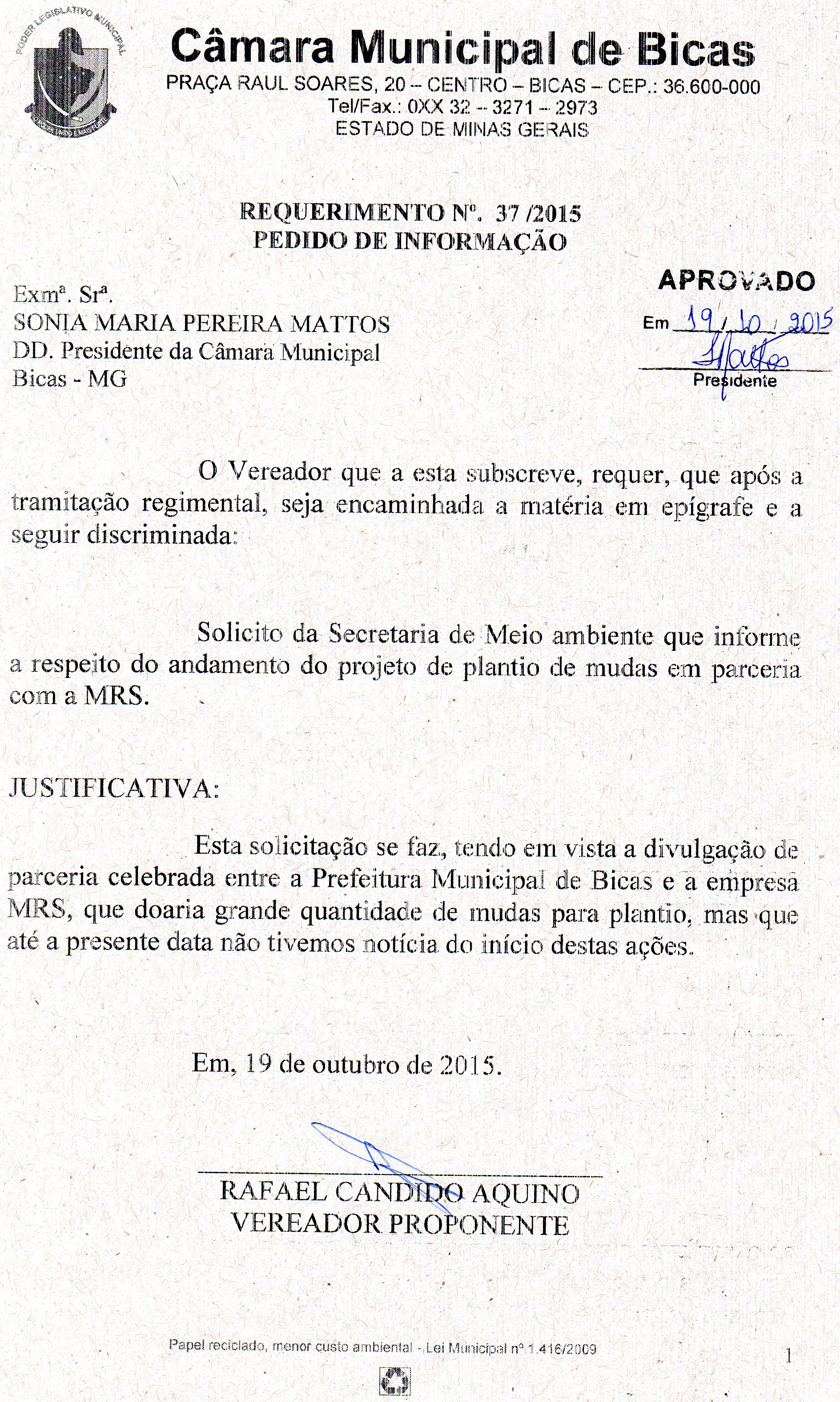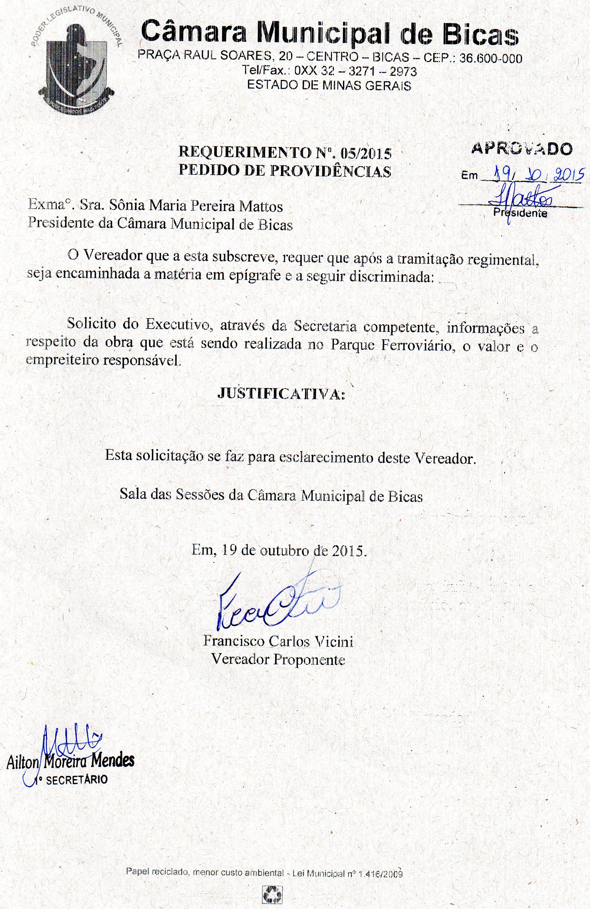 REQ 168/2015 - Requerimento