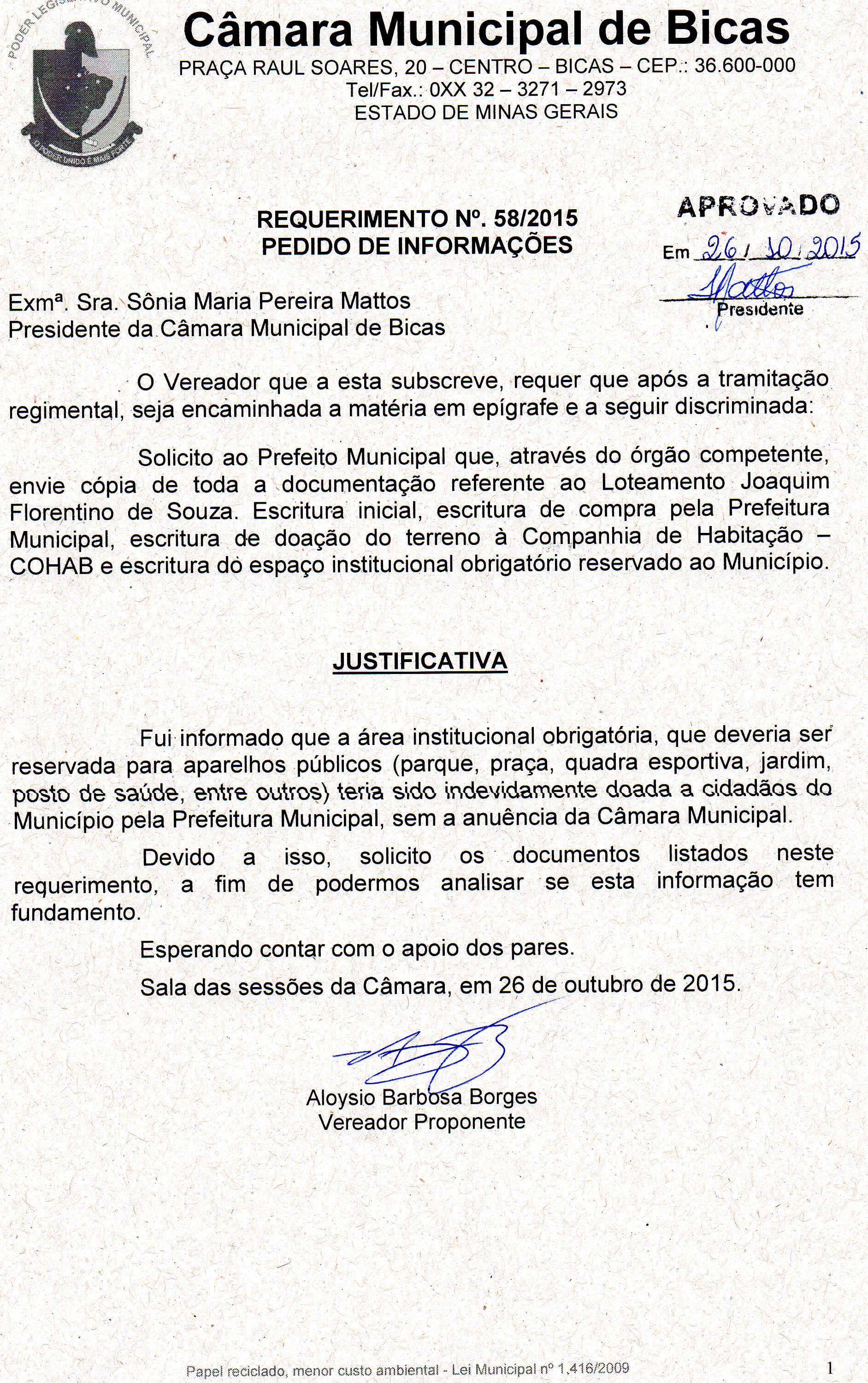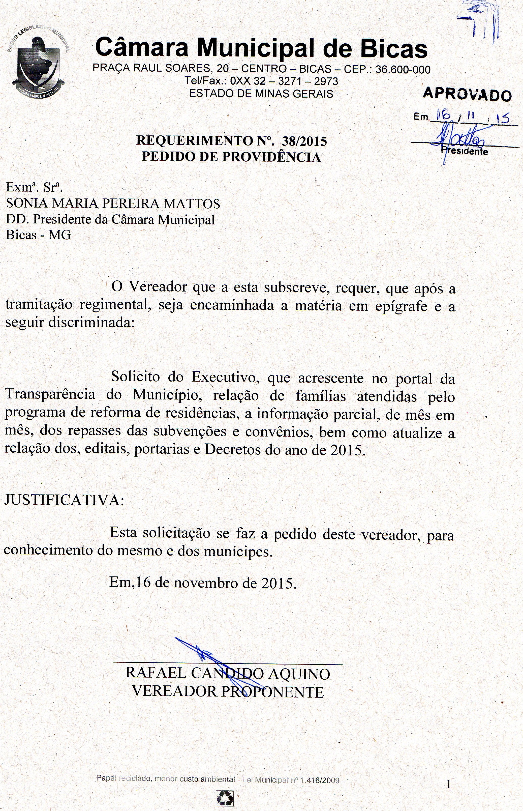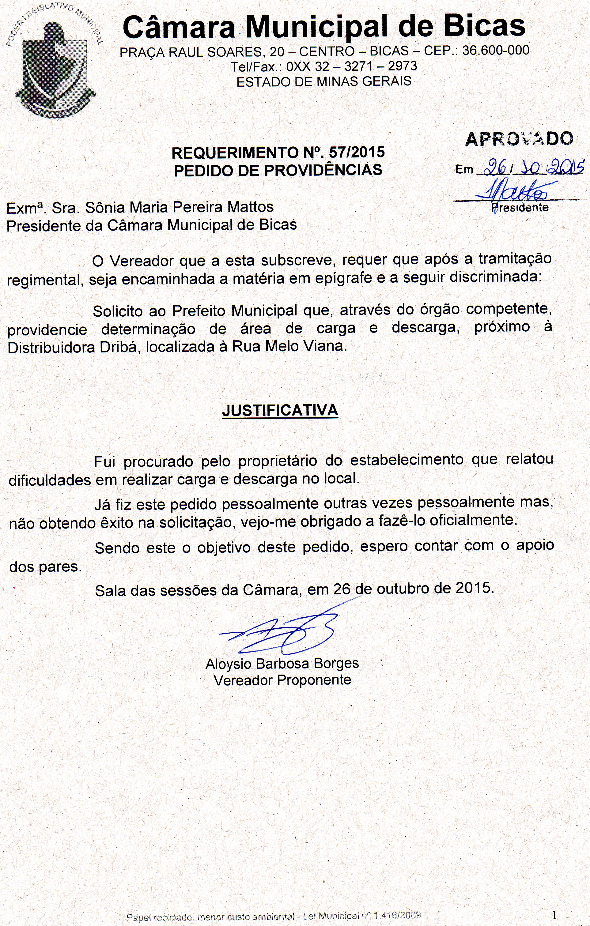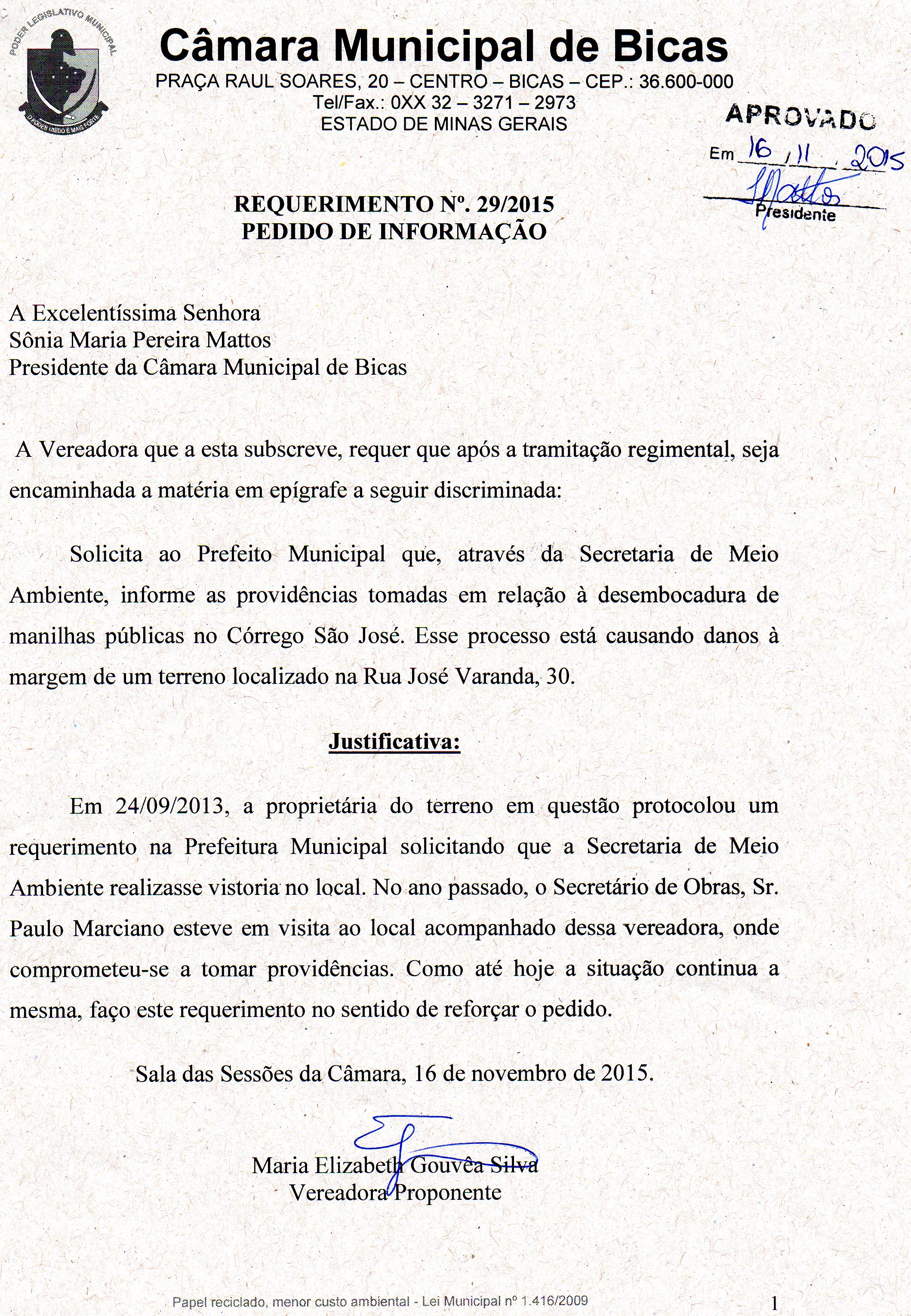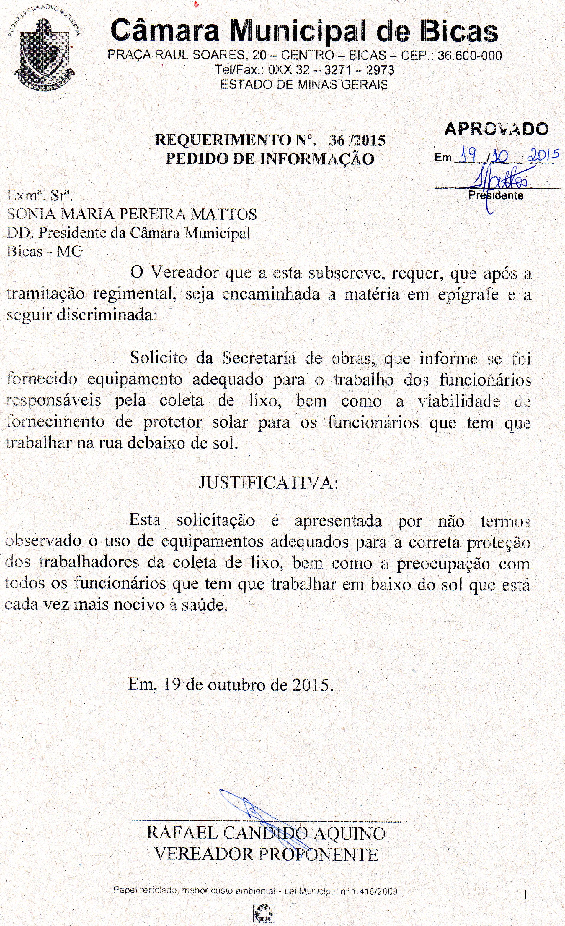 REQ 168/2015 - Requerimento