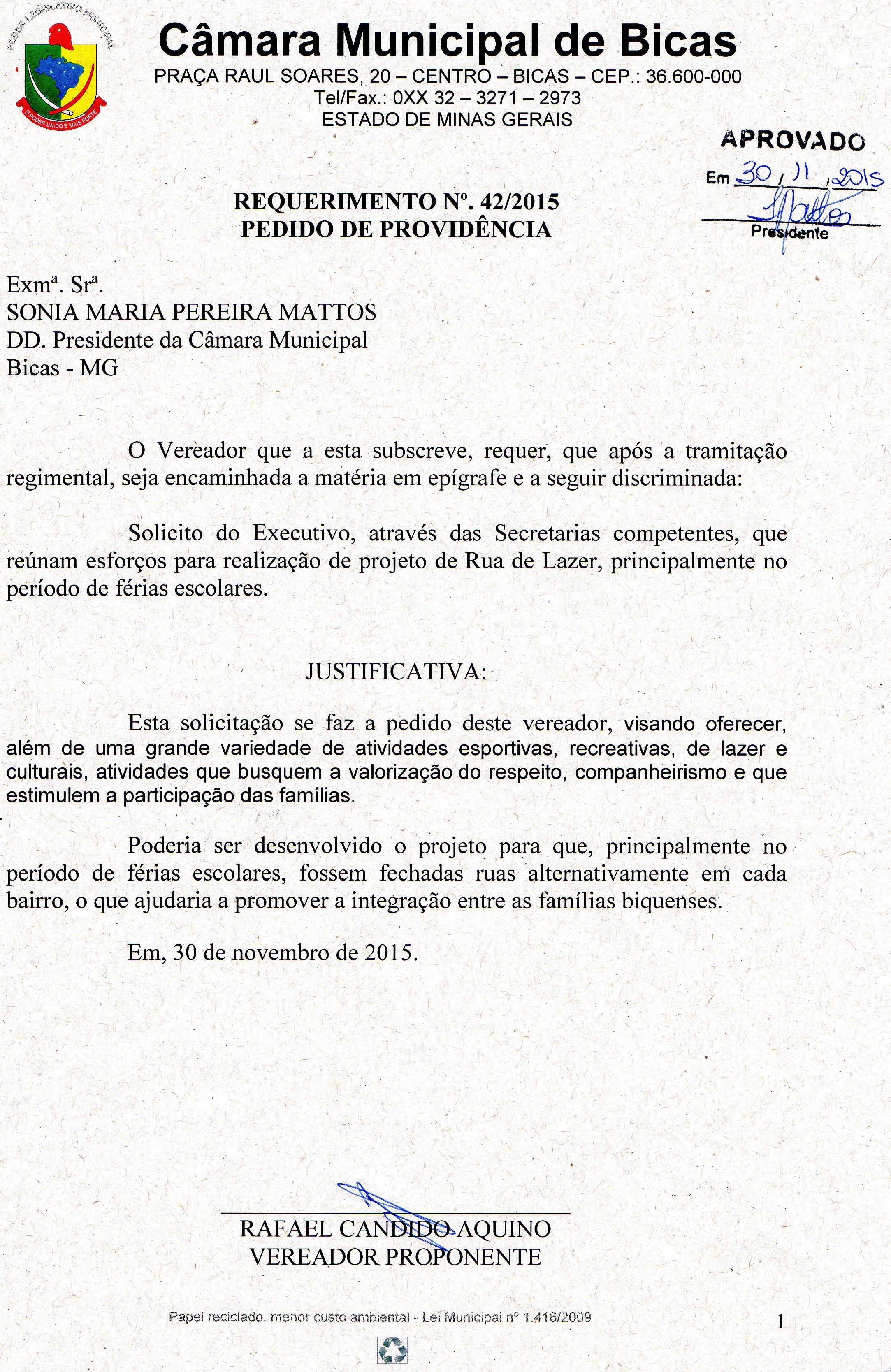 Ementa: PEDIDO DE PROVIDÊNCIA - REALIZAÇÃO DO PROJETO RUA DE LAZER, PRINCIPALMENTE NO PERÍODO DAS FÉRIAS ESCOLARES.