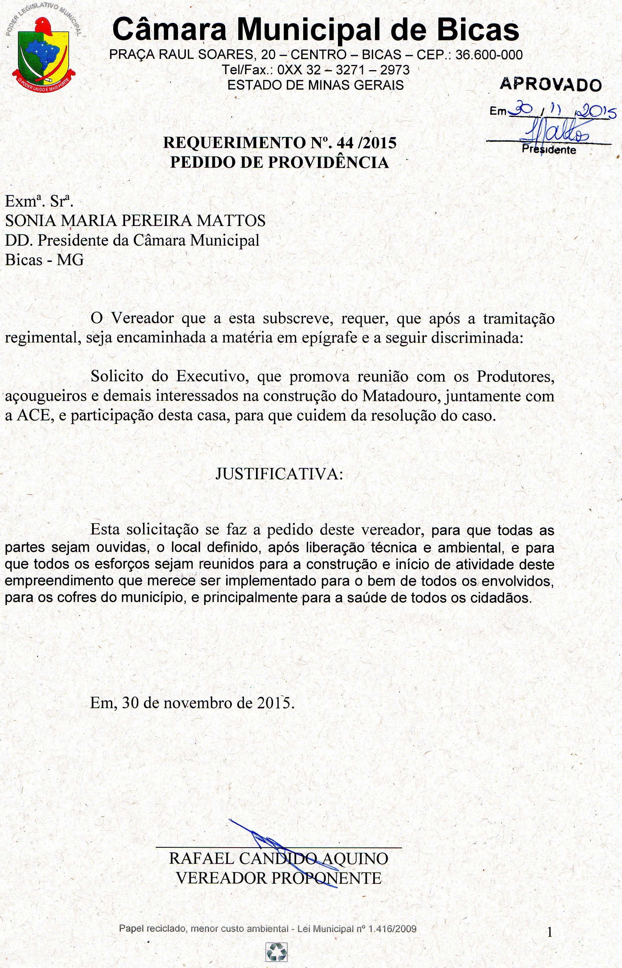 Ementa: PEDIDO DE PROVIDÊNCIA - REUNIÃO COM OS INTERESSADOS NA CONSTRUÇÃO DO MATADOURO NESTE MUNICÍPIO.