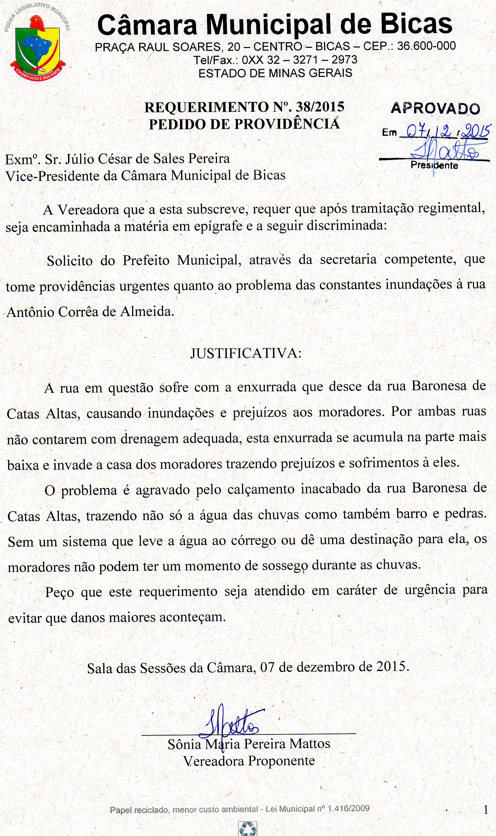 Ementa: PEDIDO DE PROVIDÊNCIA - INUNDAÇÕES À RUA ANTÔNIO CORRÊA DE ALMEIDA.