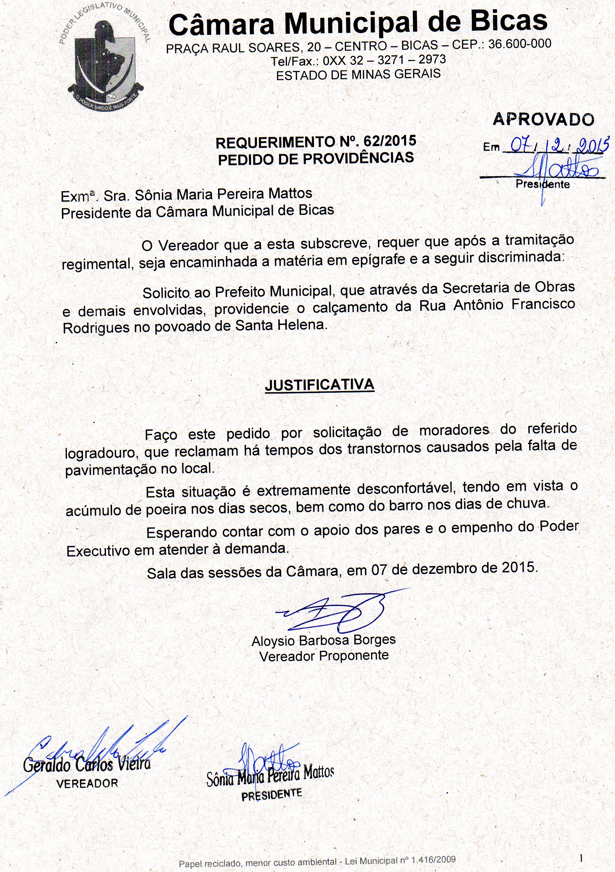 Ementa: PEDIDO DE PROVIDÊNCIA - PROVIDENCIE CALÇAMENTO DE RUA NO POVOADO DE SANTA HELENA.